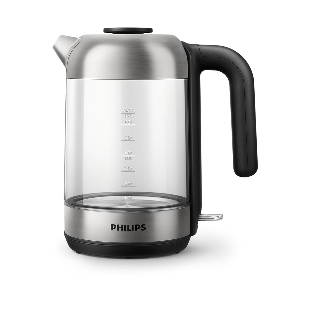 Boil water quickly and safely with this Philips kettle. The concealed heating element and robust construction bring water to the boil rapidly, while automatic shut-off and boil-dry protection offer peace of mind. A washable filter keeps water tasting fresh, and the cordless design with 360° base makes pouring effortless. A simple, reliable way to enjoy tea, coffee and more.