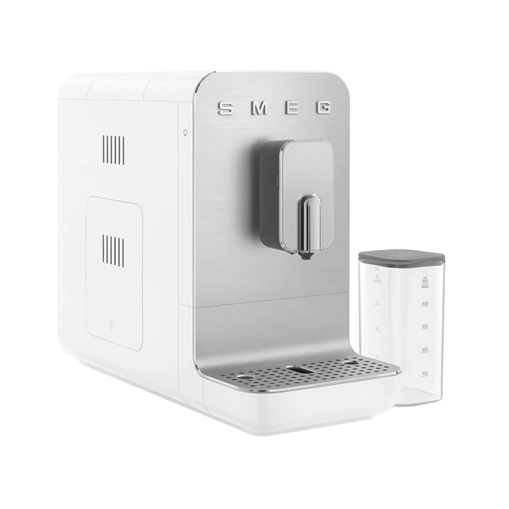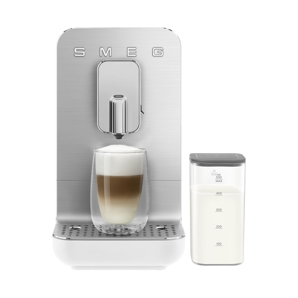 True barista indulgence meets compact design with the Smeg BCC13 automatic coffee machine in elegant white. A 19‑bar pump and 1350 W heating system extract rich espresso, while the built‑in grinder and 150 g bean hopper keep your beans fresh. Froth silky milk with the 0.5 L integrated carafe and explore a full menu of coffee and milk drinks at the touch of a button.